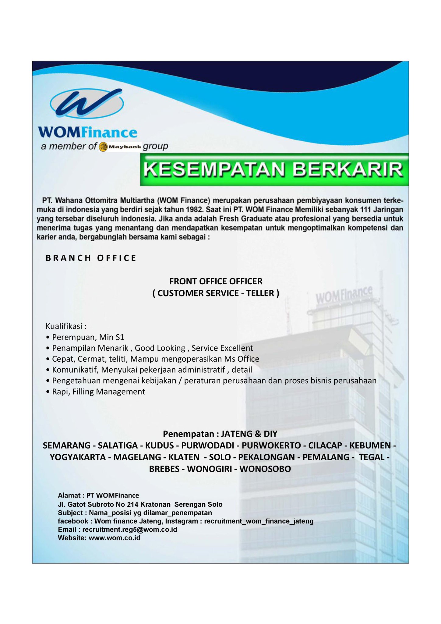 Lowongan kerja teller customer service di pt wom finance lokersemar id.